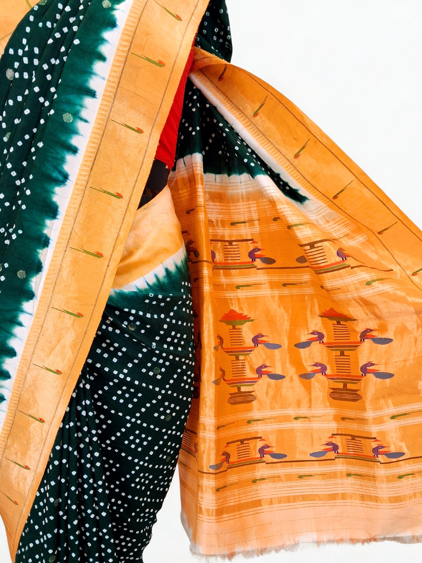 Bottle green bandhani silk paithani saree