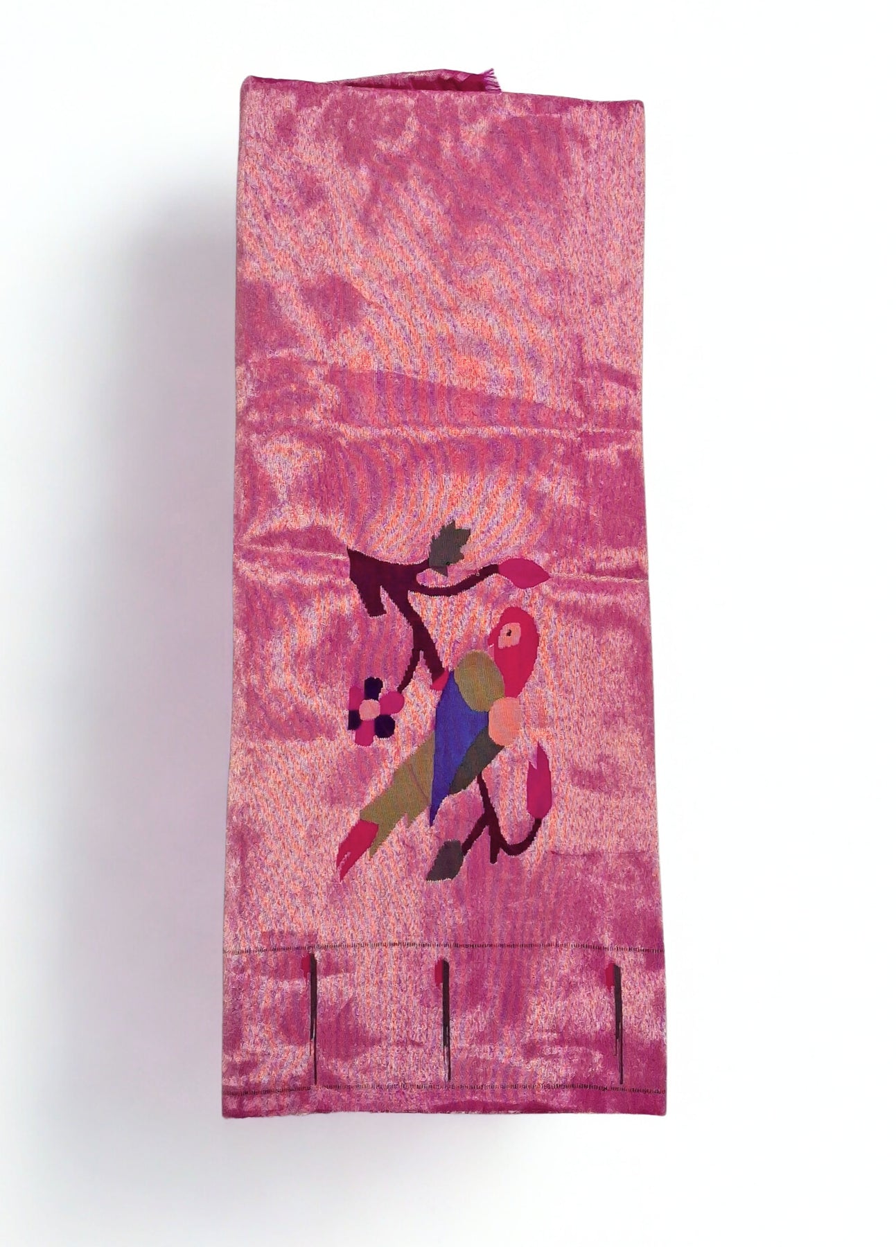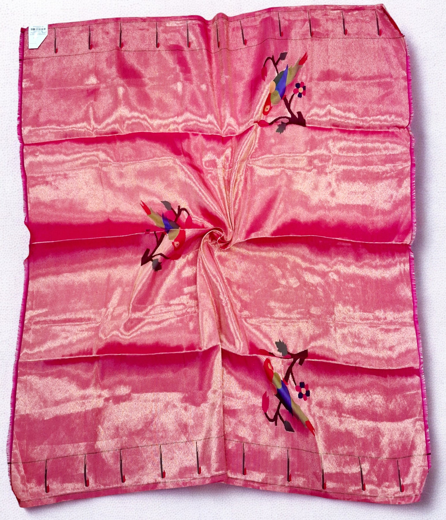 Enhance your traditional ensemble with this Paithani Pure Silk Parrot Design Three Patch Blouse Piece. 🦜✨ Made from luxurious pure silk, this blouse piece features a beautiful pink base with a rich shimmering zari texture, reflecting the elegance of classic Paithani craftsmanship.